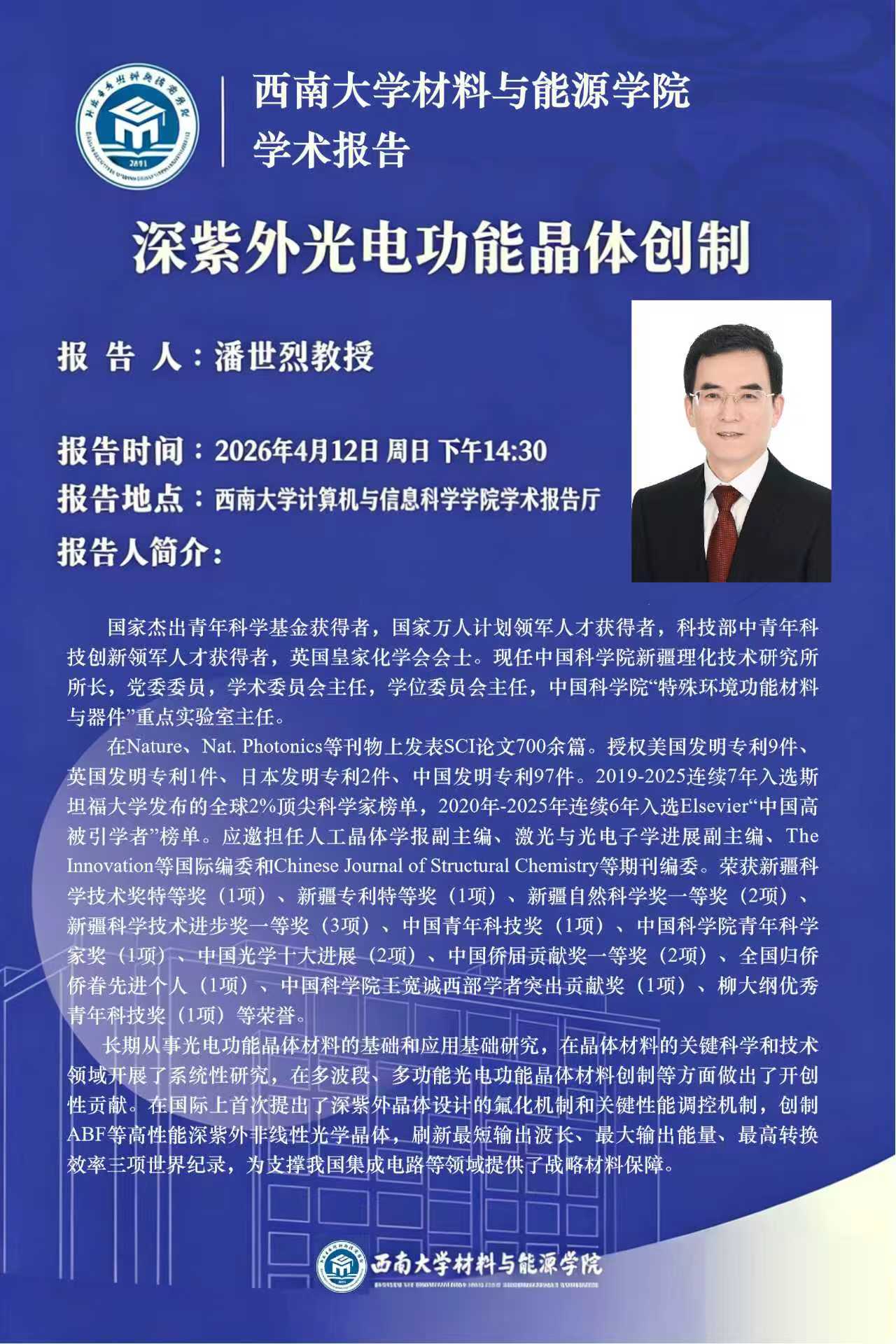 潘世烈教授学术报告简介