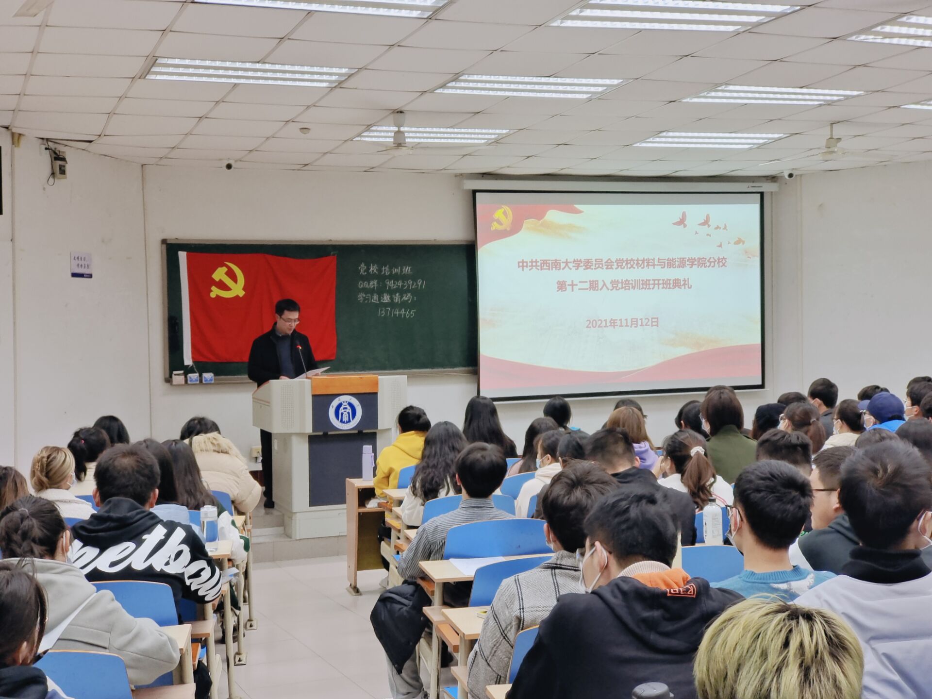 2021年11月12日,伟德betvlctor1946源于英国第十二期党校培训班开班典礼在32教312教室如期举行。开班典礼由学院党委副书记刘昭暾主持,学院党委书记李红、培训班班主任施雪芮老师及150余名学员参加。